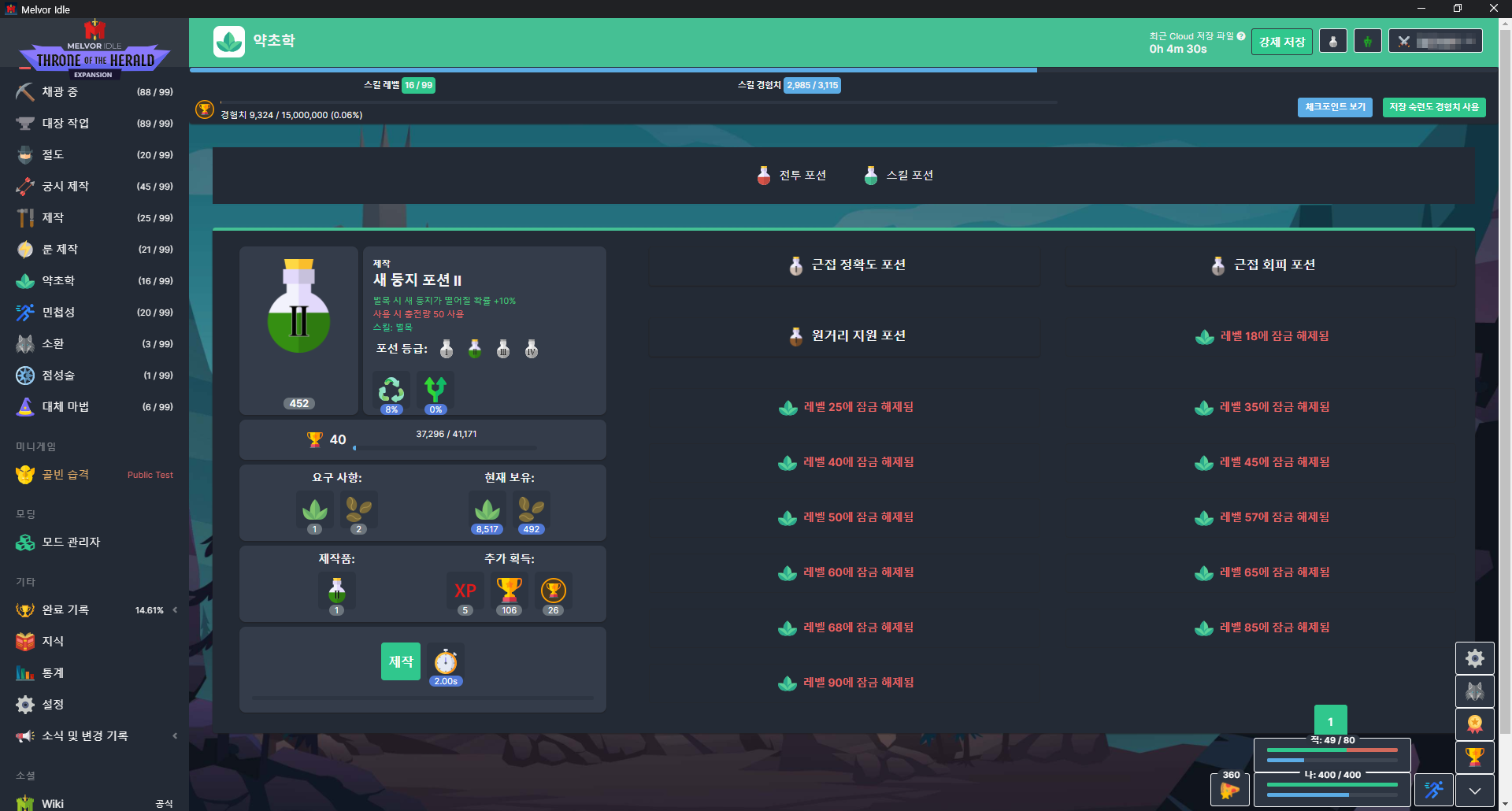 이거 전혀 손도 안 대고 있다가 고을 임무에서 포션 달라고 해서 뒤늦게 올리고 있는데