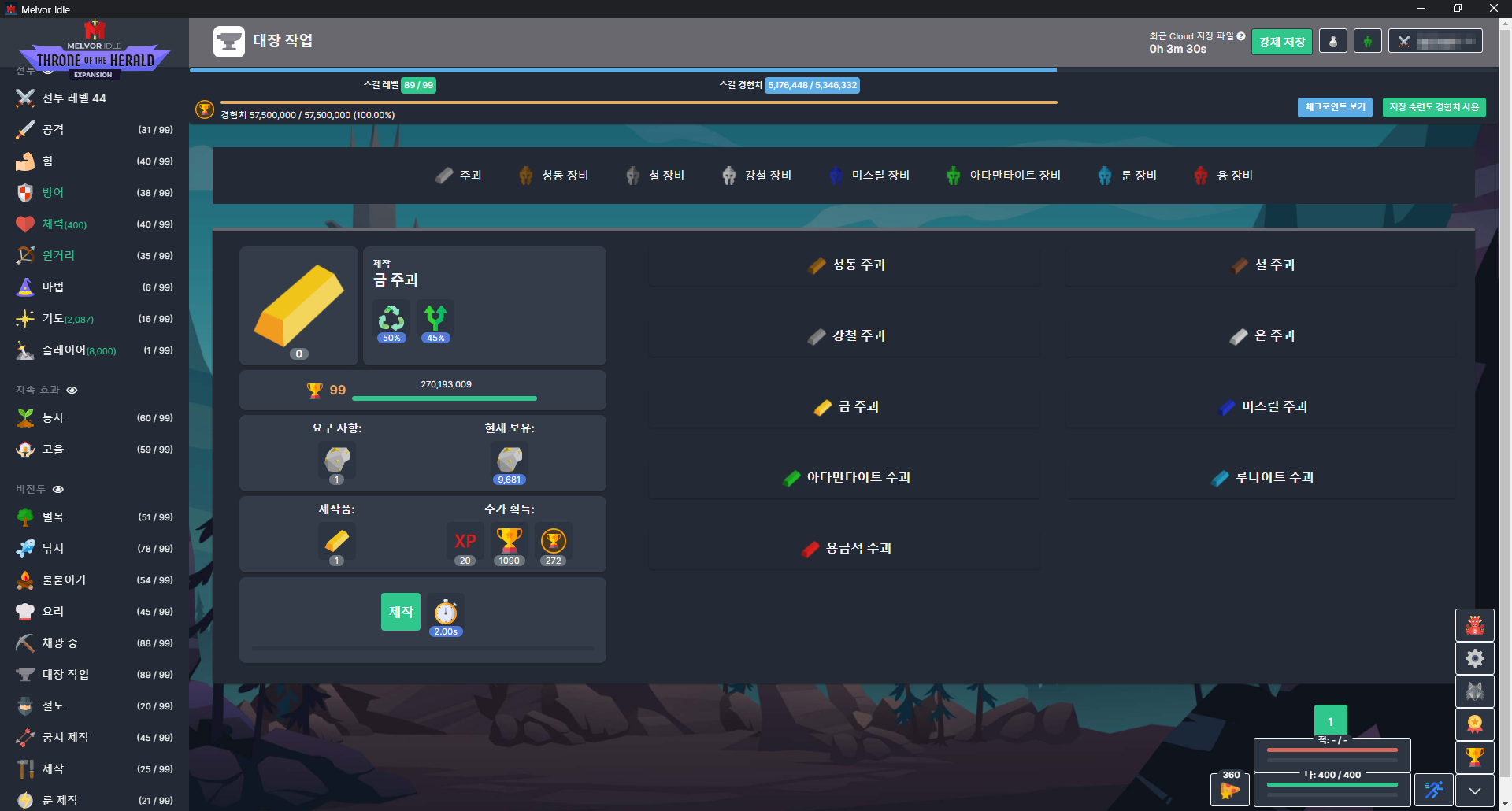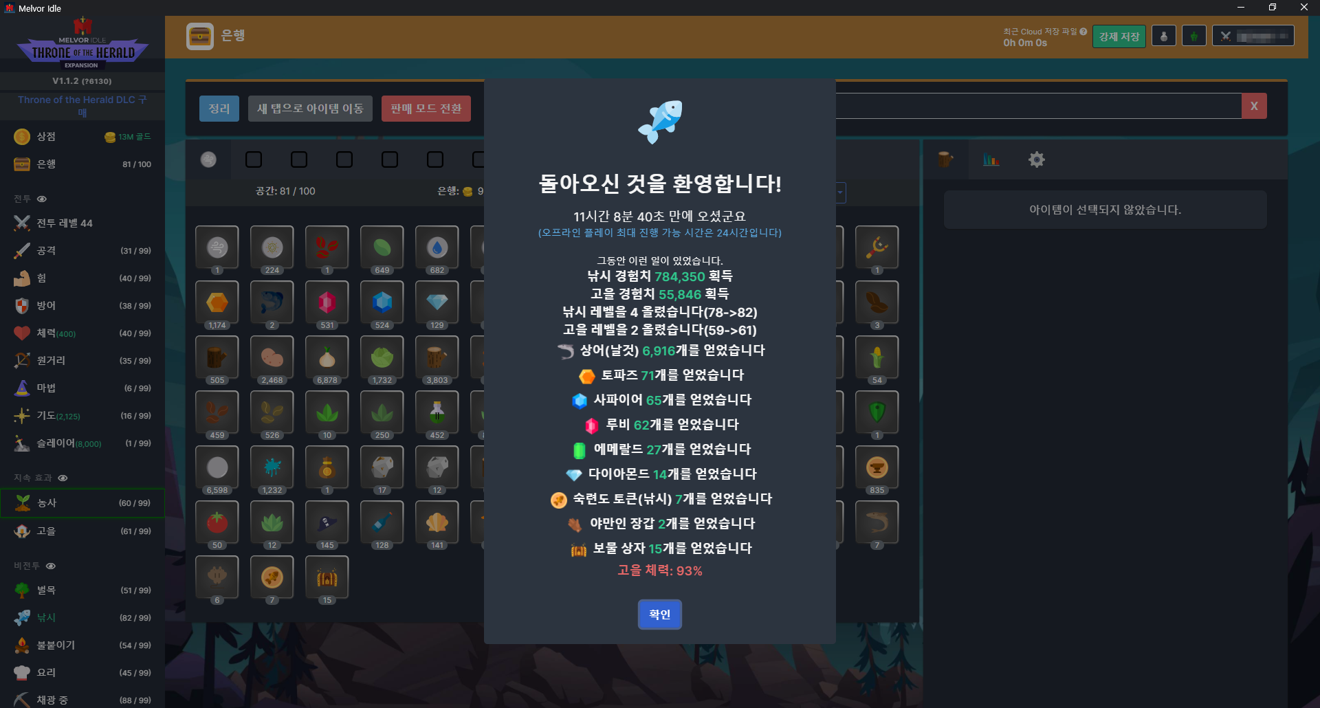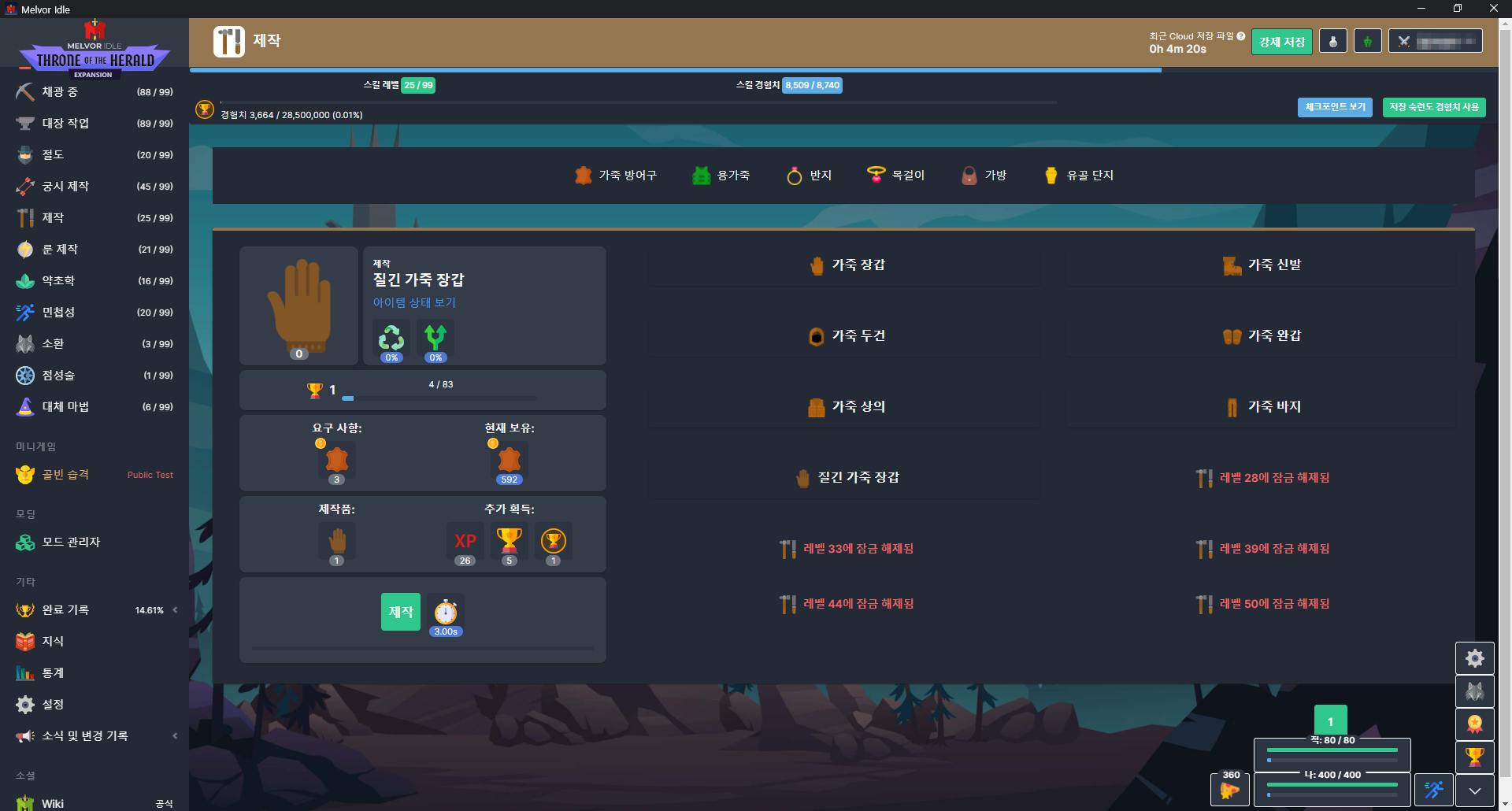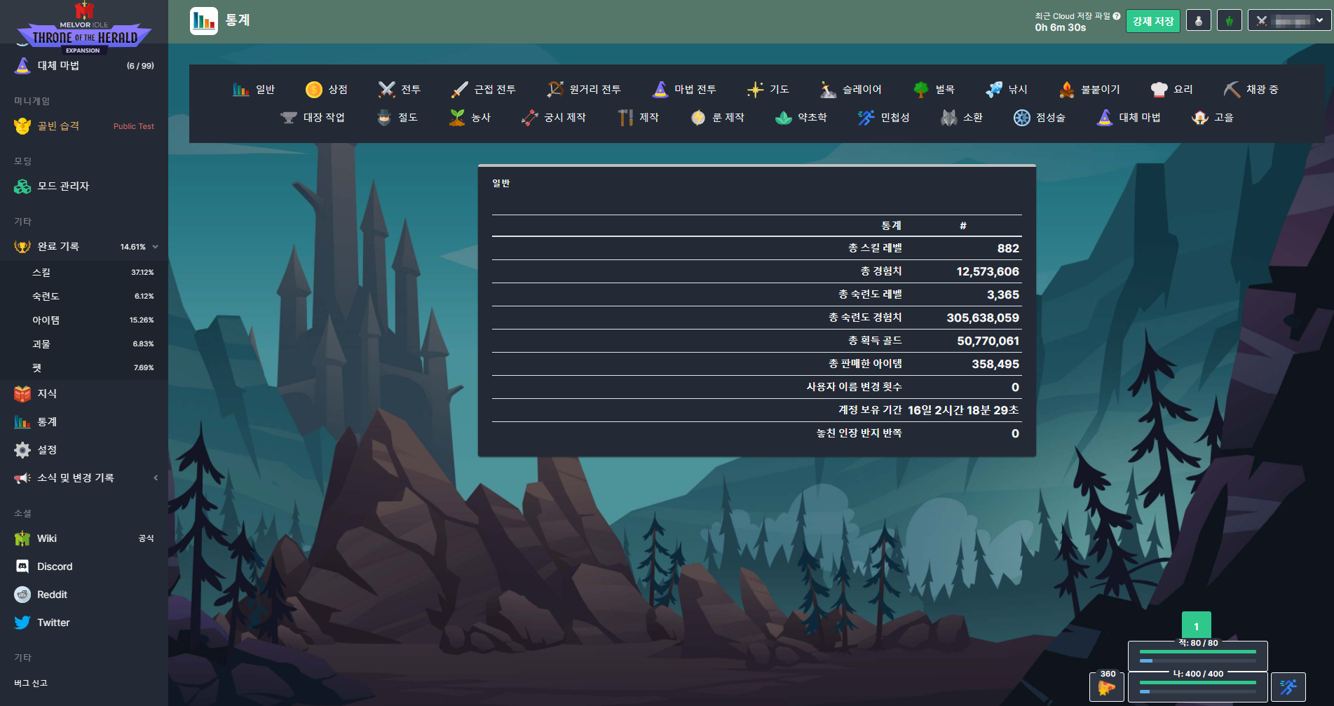 방치형 게임이 다 그렇긴 하지만.. 비전투 스킬들은 게임을 꺼도 계속 수련돼서 편하다 (전투도 계속 수련되긴 함)