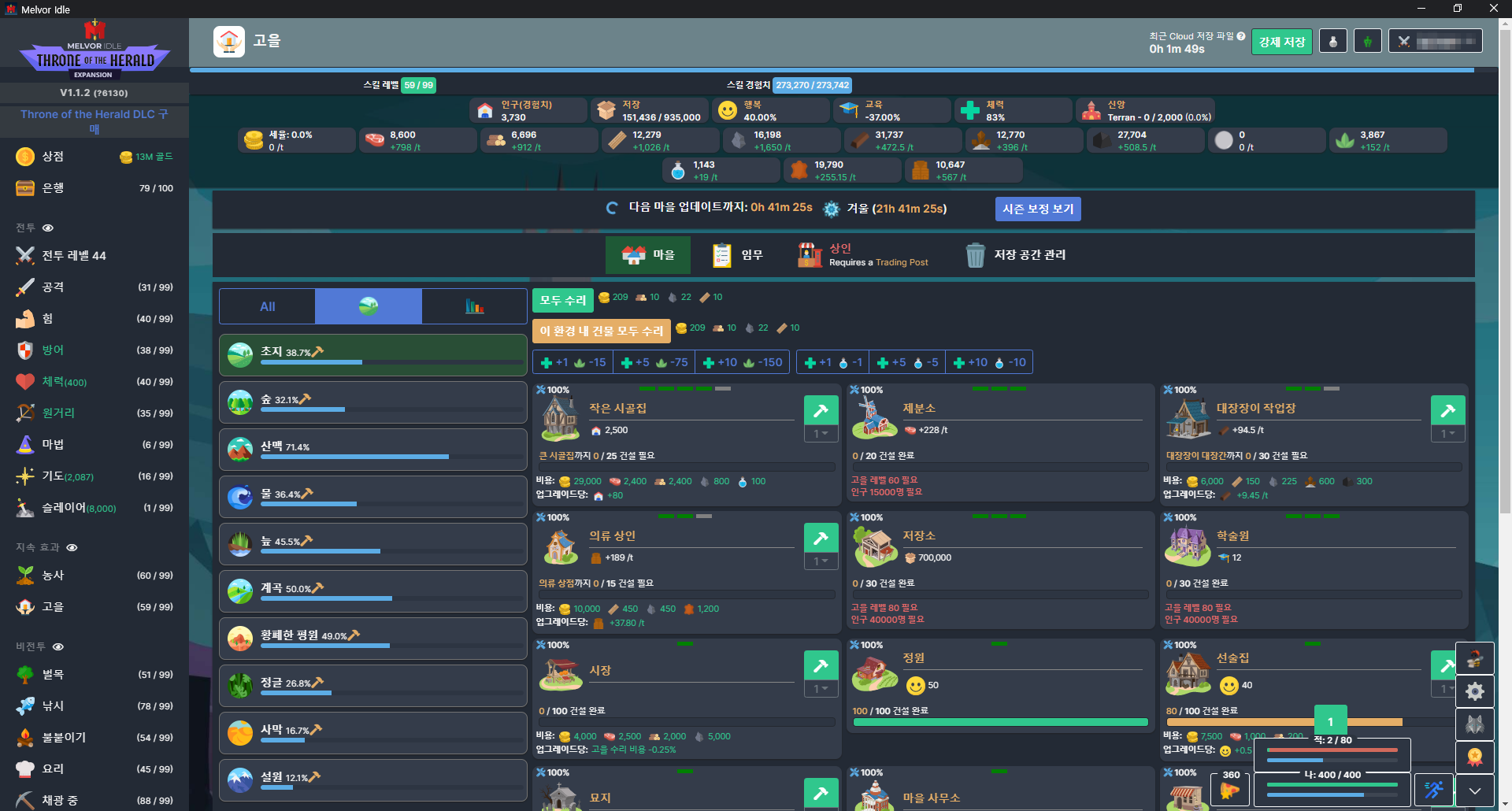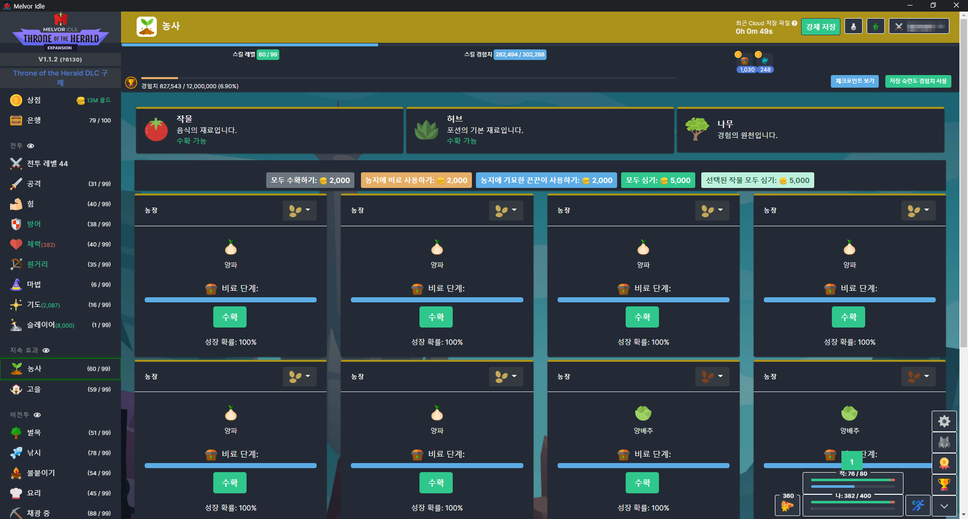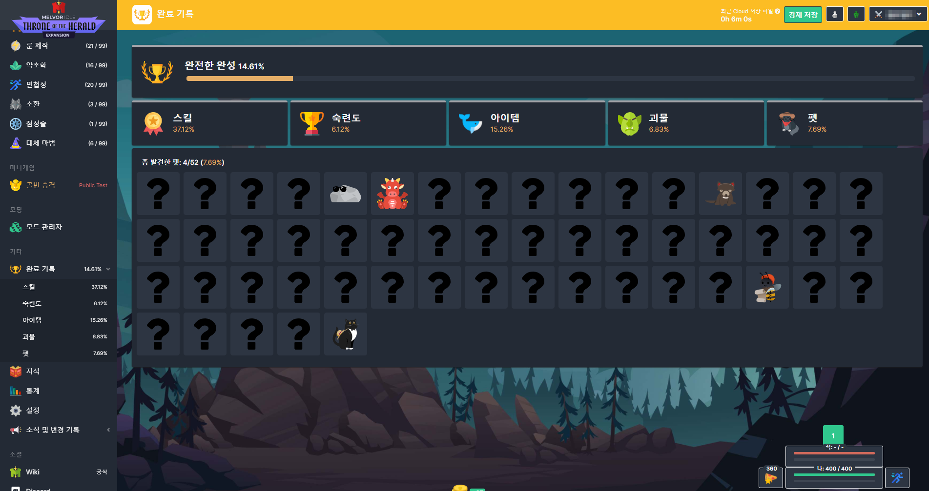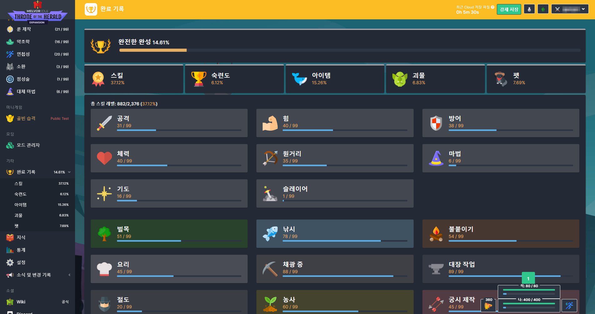 방치형 게임이 다 그렇긴 하지만.. 비전투 스킬들은 게임을 꺼도 계속 수련돼서 편하다 (전투도 계속 수련되긴 함)